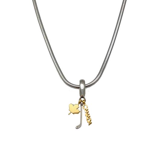 Gold T/T Canada Hockey Maple Leaf Dangle Necklace