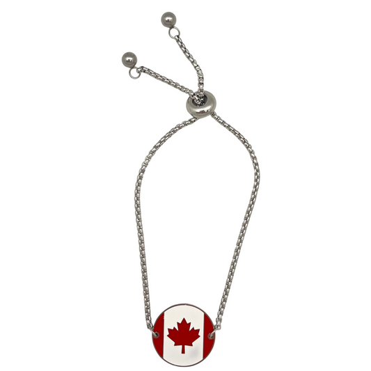Silver Multi Round Canada Flag Bracelet